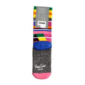CALZE DONNA HAPPY SOCKS FANTASIA ATHLETIC GRAPHIC STRIPE. 79% COTTON, 14% POLYAMIDE, 6% ELASTODIENE, 1% ELA. TAGLIA UNICA
