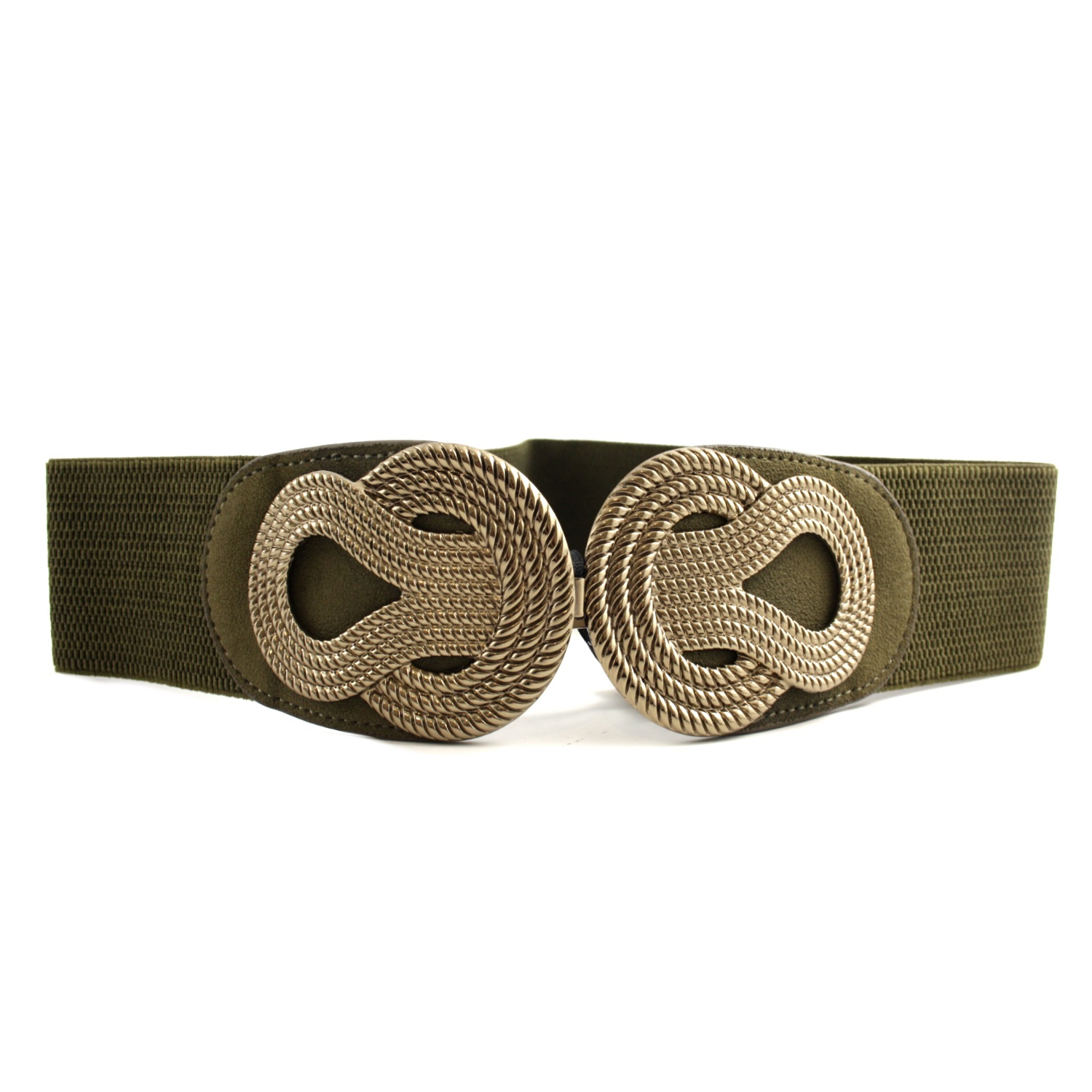 Aggiungete una nota edgy al look con il cinturone a fascia elastica verde militare di Nali' dagli inserti in acciaio fantasia intreccio circolare. Dotato di chiusura a incastro.