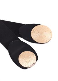 LA CINTURA ELASTICA DI NAL? COLOR NERO CATTURA L'ATTENZIONE PER LA MAXI FIBBIA FRONTALE ORO DI AGGANCIO CON SATINATURA. PERFETTA PER DEFINIRE LA VITA DI MAXI XCAMICIA O ABITI OVER. LUNGHEZZA: 90 CM