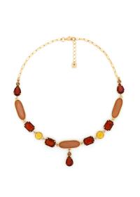 LA COLLANA GIROCOLLO NAL? CON PIETRE SFUMATE NEI TONI DEL GIALLO E DEL MARRONE E PENDENTE ? UNA SCELTA RAFFINATA PER UN'OCCASIONE. DOTATA DI CHIUSURA CON MOSCHETTONE, ? PERFETTA CON ABITI FLUIDI.
