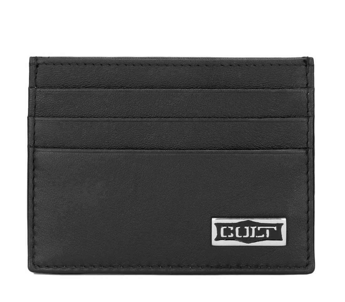 PORTAFOGLIO FIRMATO CULT CON LOGO NELLA PARTE FRONTALE. AL SUO INTERNO ED ESTERNO SONO PRESENTI PI? SCOMPARTI PER ORGANIZZARE BANCONOTE, TESSERE E MONETE, CHIUSURA A LIBRO. DIMENSIONI 8X10,5