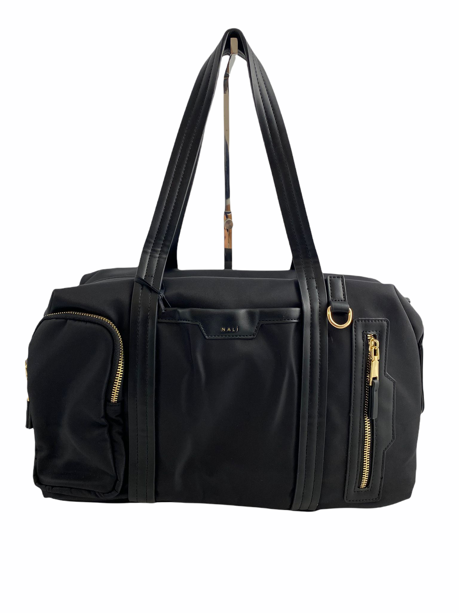 LA NUOVA BORSA IN NYLON NERA DI NALI', PERFETTA DA PORTARE PER I WEEKEND FUORI PORTA O A LAVORO, E' COMODA E FUNZIONALE. DOTATA DI CHIUSURA A ZIP E TASCHE FRONTALI, NON POTRETE PIU' FARNE A MENO! 39 X 17 X 30 CM