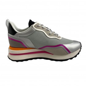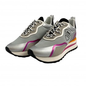 SCARPE SNEAKERS DONNA BLAUER CASUAL SPORTIVE IN TESSUTO E PELLE ARGENTO. MODELLO MARPLE CON FONDO IN GOMMA CON RIALZO.