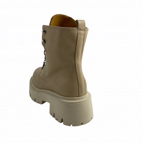 Gio+ Stivaletti Anfibi Donna in Pelle Beige Bianco Latte Modello Savana. Fondo in gomma carrarmato.