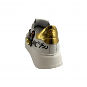 Gio+ scarpe sneakers donna casual in pelle bianca con fantasia farfalle e fondo antiscivolo.