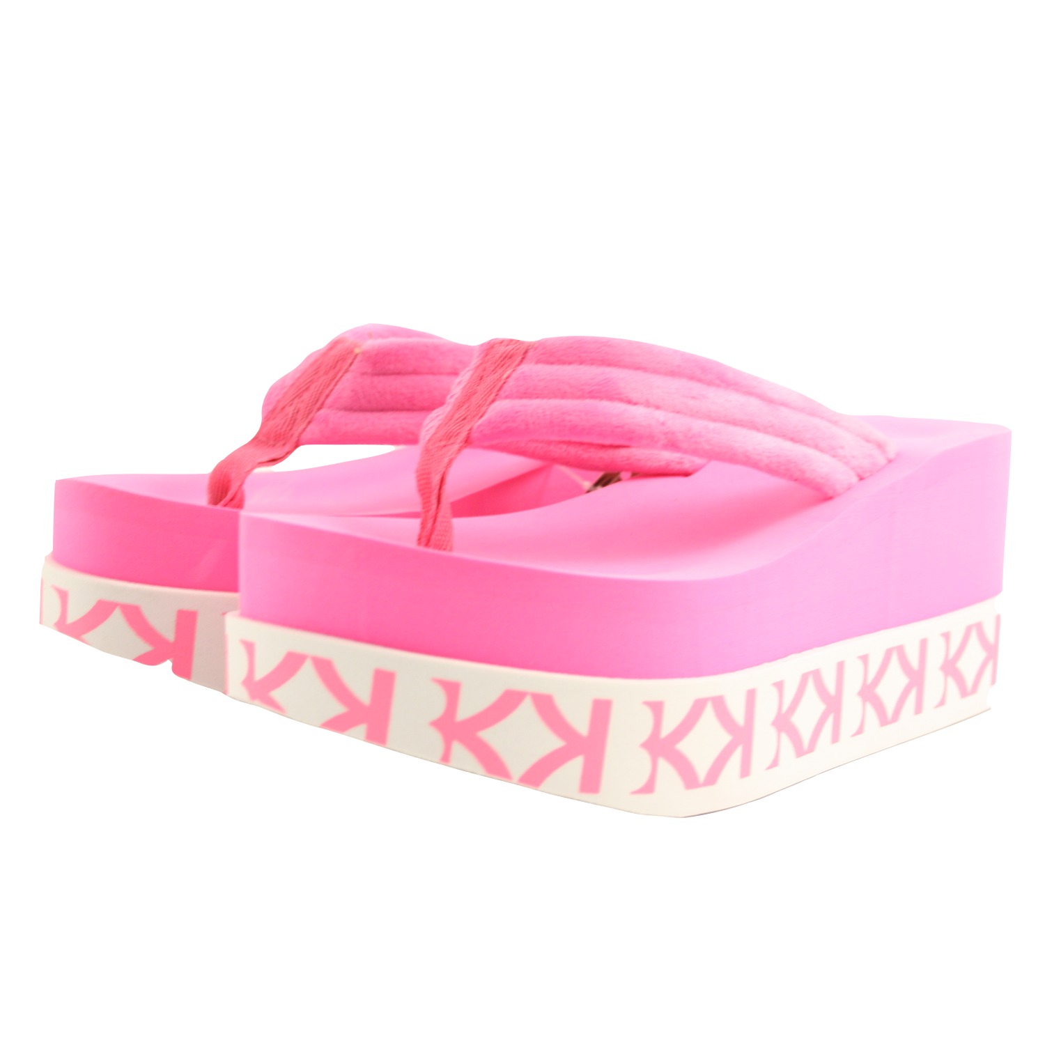 Infradito donna KBK in gomma e spugna fucsia. zeppa comoda e confortevole da 7,5cm.