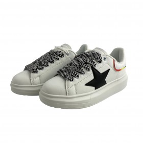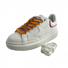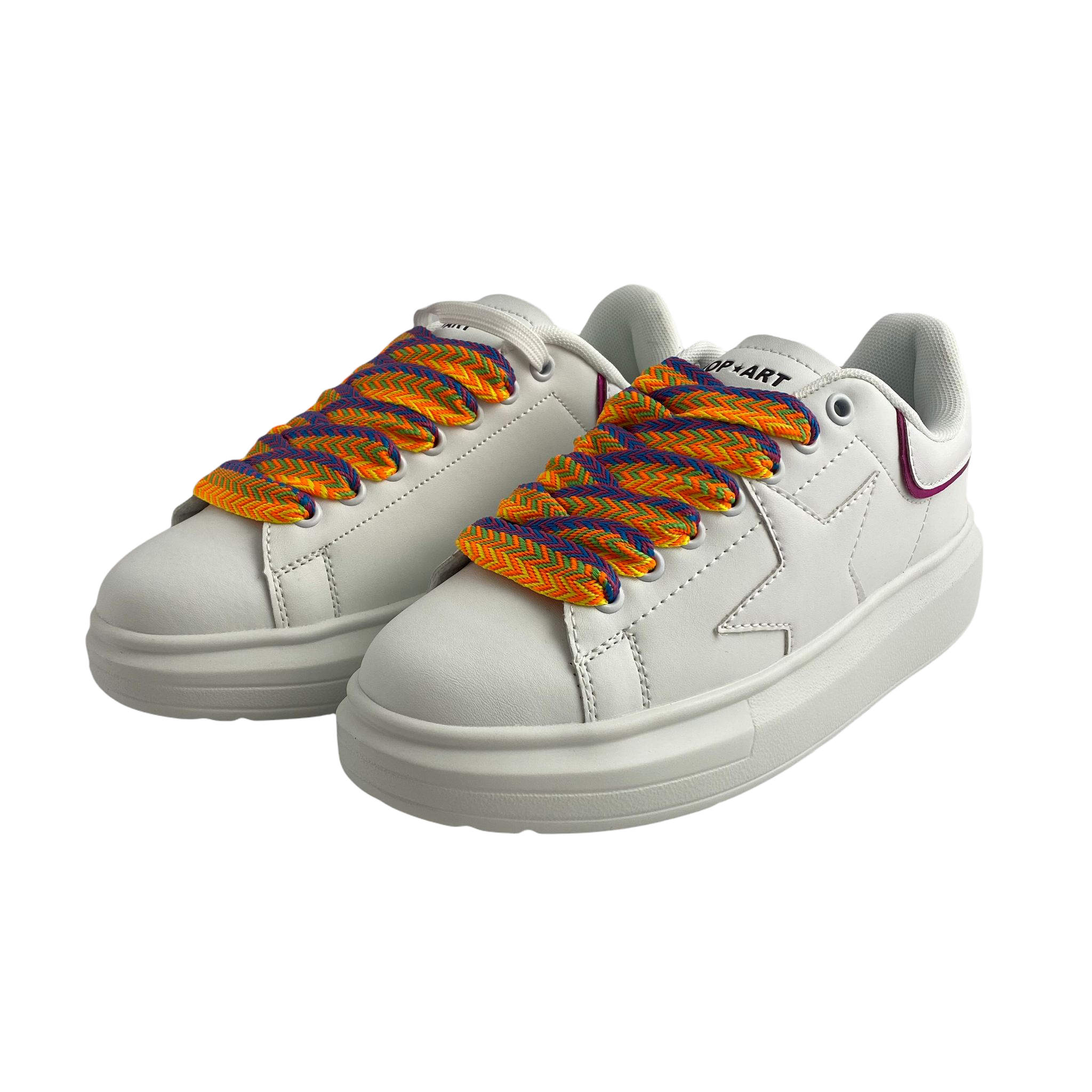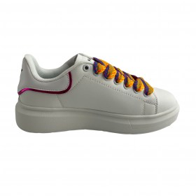Shop Art scarpe sneakers donna casual sportive in ecopelle bianca con lacci multicolor.