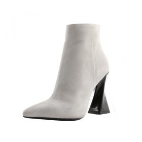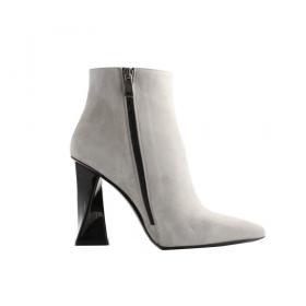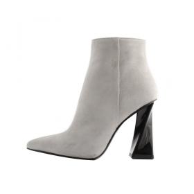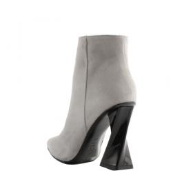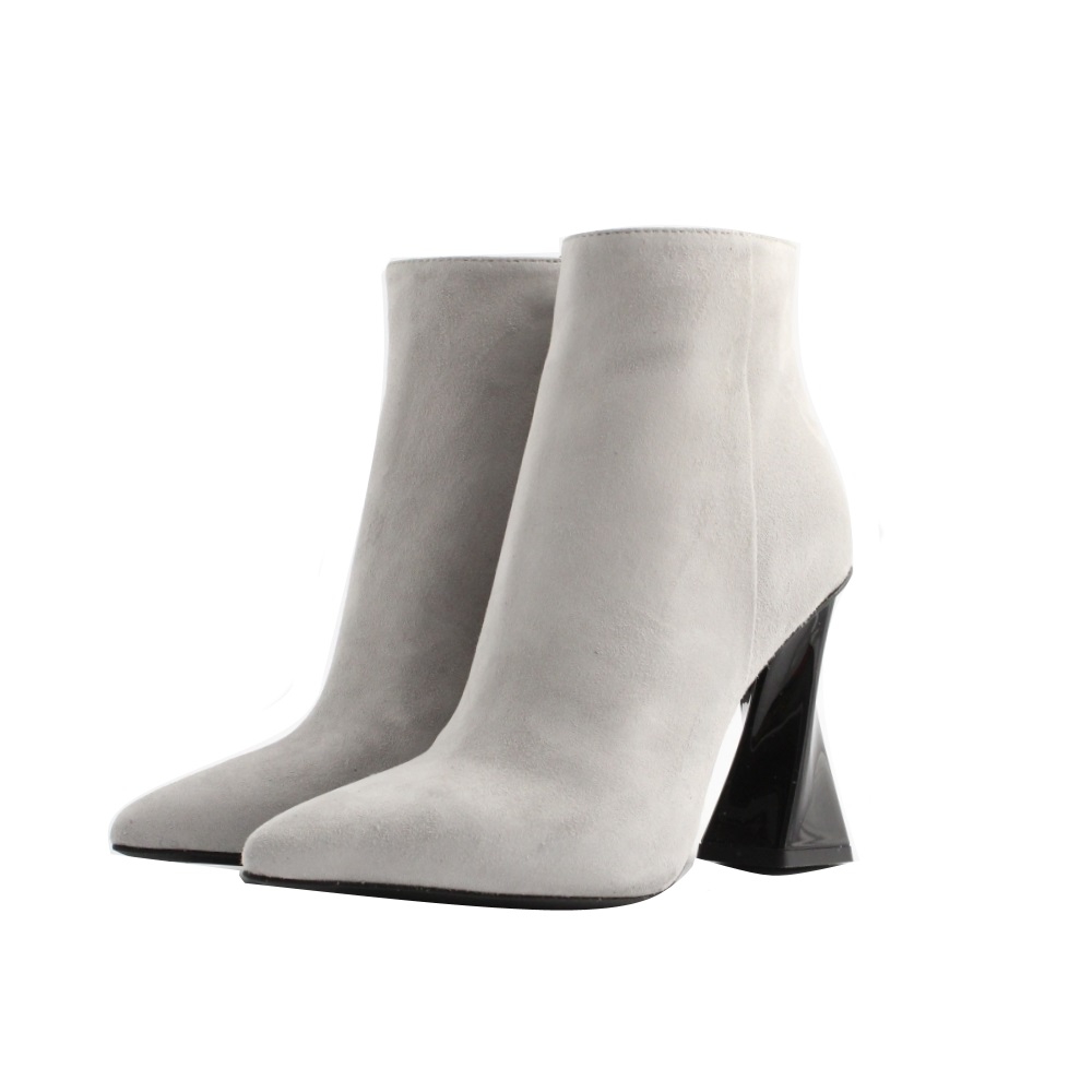 STIVALETTI A PUNTA DONNA TIFFI IN CAMOSCIO GRIGIO CHIARISSIMO CON ZIP LATERALE. TACCO ROBUSTO NERO A SPIRALE DA 10CM. PRODOTTO MADE IN ITALY.