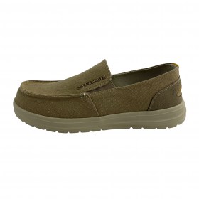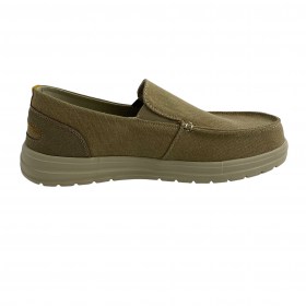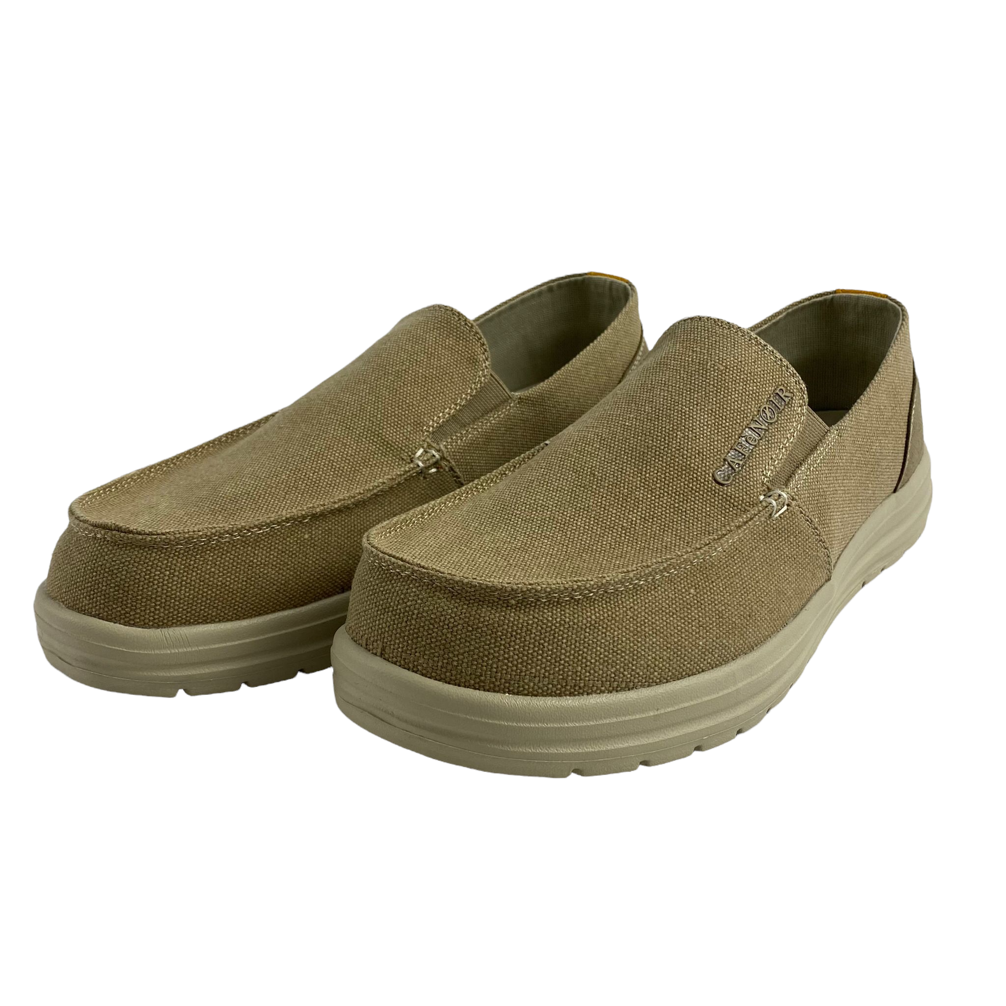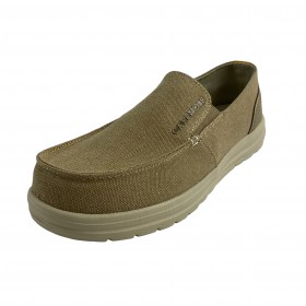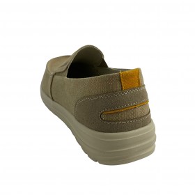 CafèNoir scarpe comode e leggere da uomo, modello slipon loafer in tessuto canvas beige. Fondo in gomma antiscivoklo con rialzo.