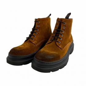 SOLDINI scarpe stivaletti anfibi uomo in pelle camoscio marrone cuoio cognac. Fondo gomma antiscivolo. Prodotto Made in Italy.